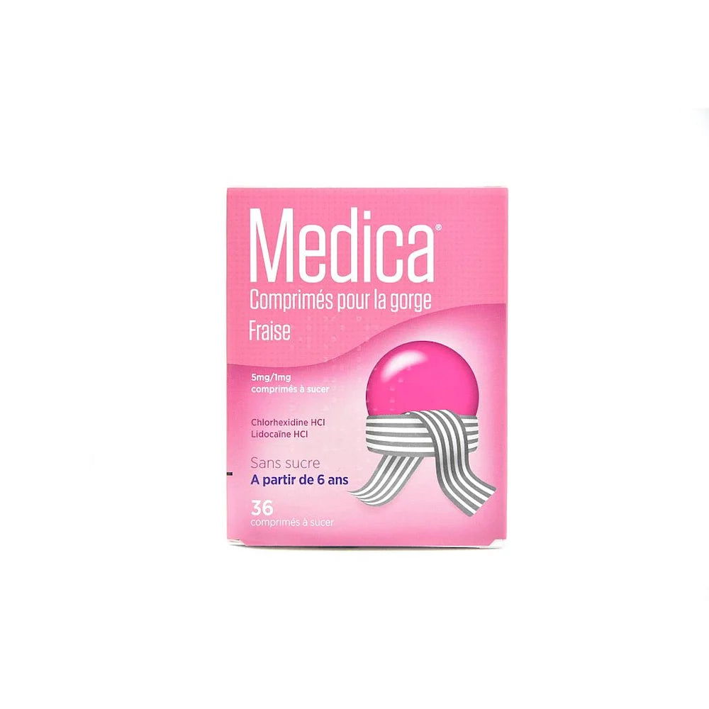 Medica Fraise Strawberry Tablet is lozenge designed for local action in the mouth and throat. It is used to relieve sore throat, pain, and pharyngeal disorders accompanied by irritation.